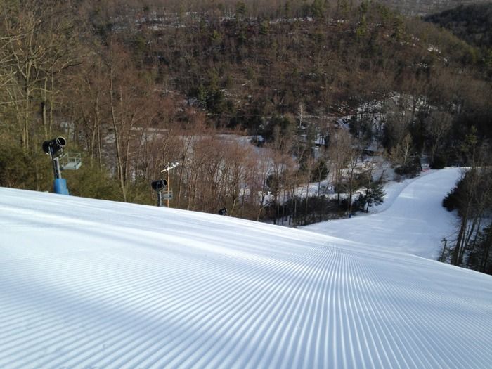 The rest of the upper third of Montage Mountain is devoted to intermediate cruising trails and a 3.5 acre freestyle park. A triple bisects the middle of this terrain but to reach the highest point you must ride the top-to-bottom Long Haul Triple. Take the combo of Upper and Lower Fast Track, where blue darkens to black, for a long, fast cruise over a mile in length. The most advanced skiers and riders will do best to stick to the Phoebe Snow Quad, which serves a trio of double-black diamond trails. The North-facing aspect here helps keep the snow dry and fresh longer.